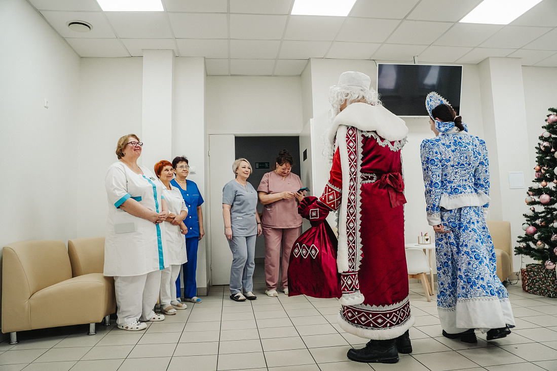Дед Мороз и Снегурочка «Движения первых» пожелали крепкого здоровья медицинским работникам: специалистам областного перинатального центра, Курской областной больницы и службы скорой помощи. Врачей, медсестер, фельдшеров и санитаров поблагодарили за их труд, самоотверженность и отзывчивость.