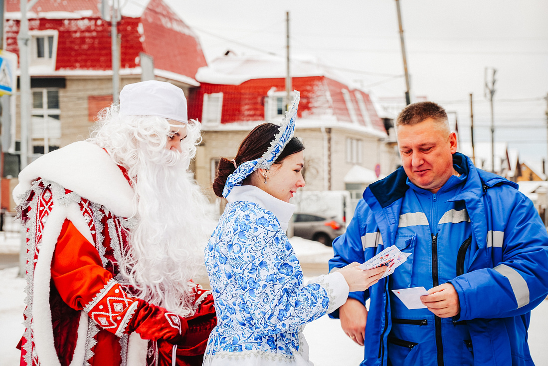 Активисты «Движения первых» поздравляют с Новым годом тех, кто в праздники работает