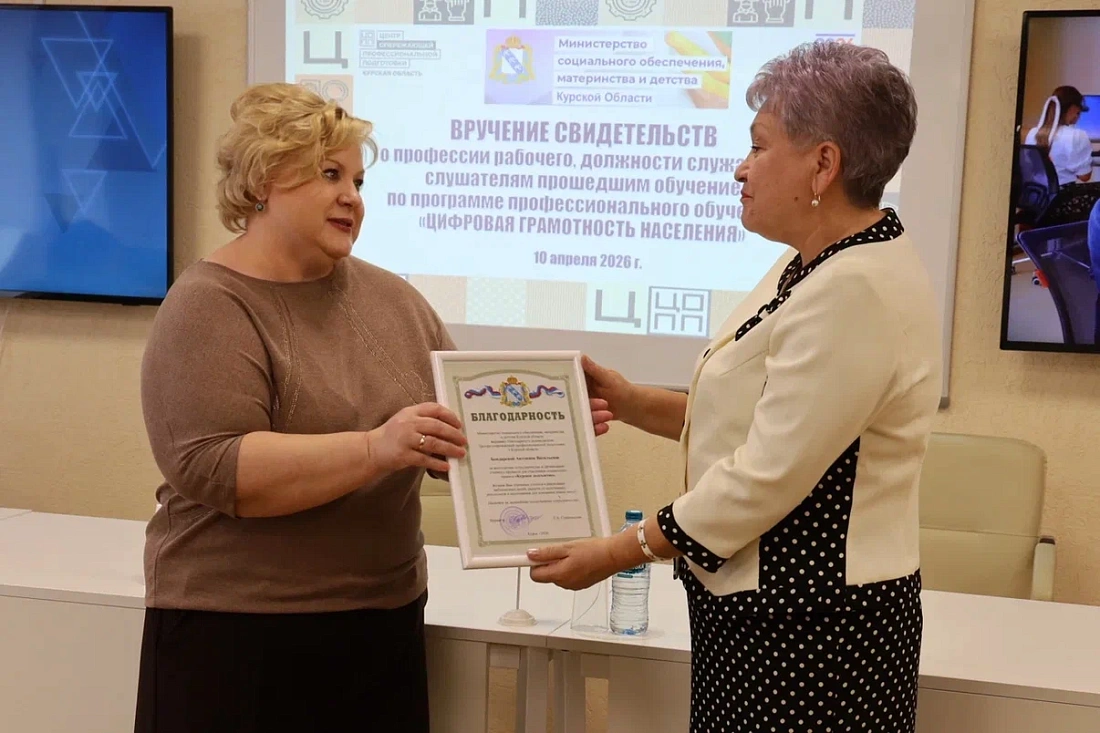 Заместитель министра социального обеспечения, материнства и детства Курской области Светлана Ковалёва вручила удостоверения о дополнительной профессиональной подготовке участникам проекта «Курское долголетие».